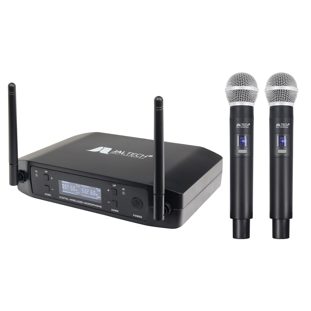 Lleva tu voz más lejos. Este set profesional incluye 2 micrófonos inalámbricos de alto rendimiento, ideales para presentaciones, grabaciones o eventos en vivo.