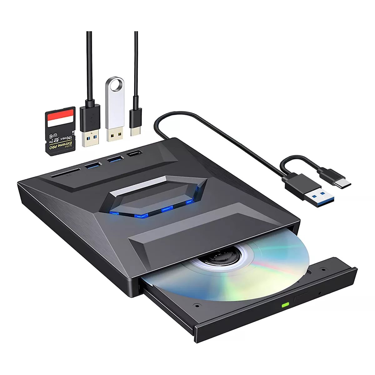 UNIDAD DVD EXTERNA USB 3.0 + TYPE C 5 EN 1